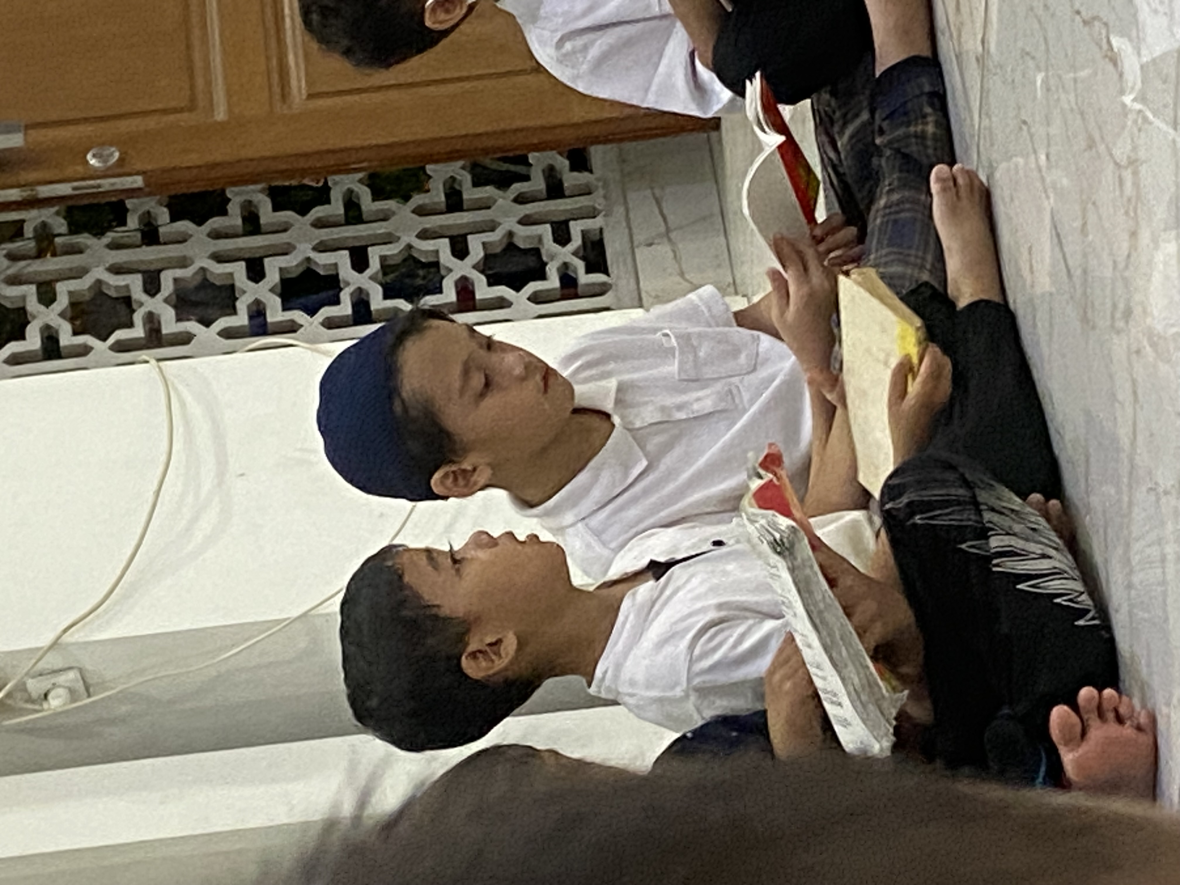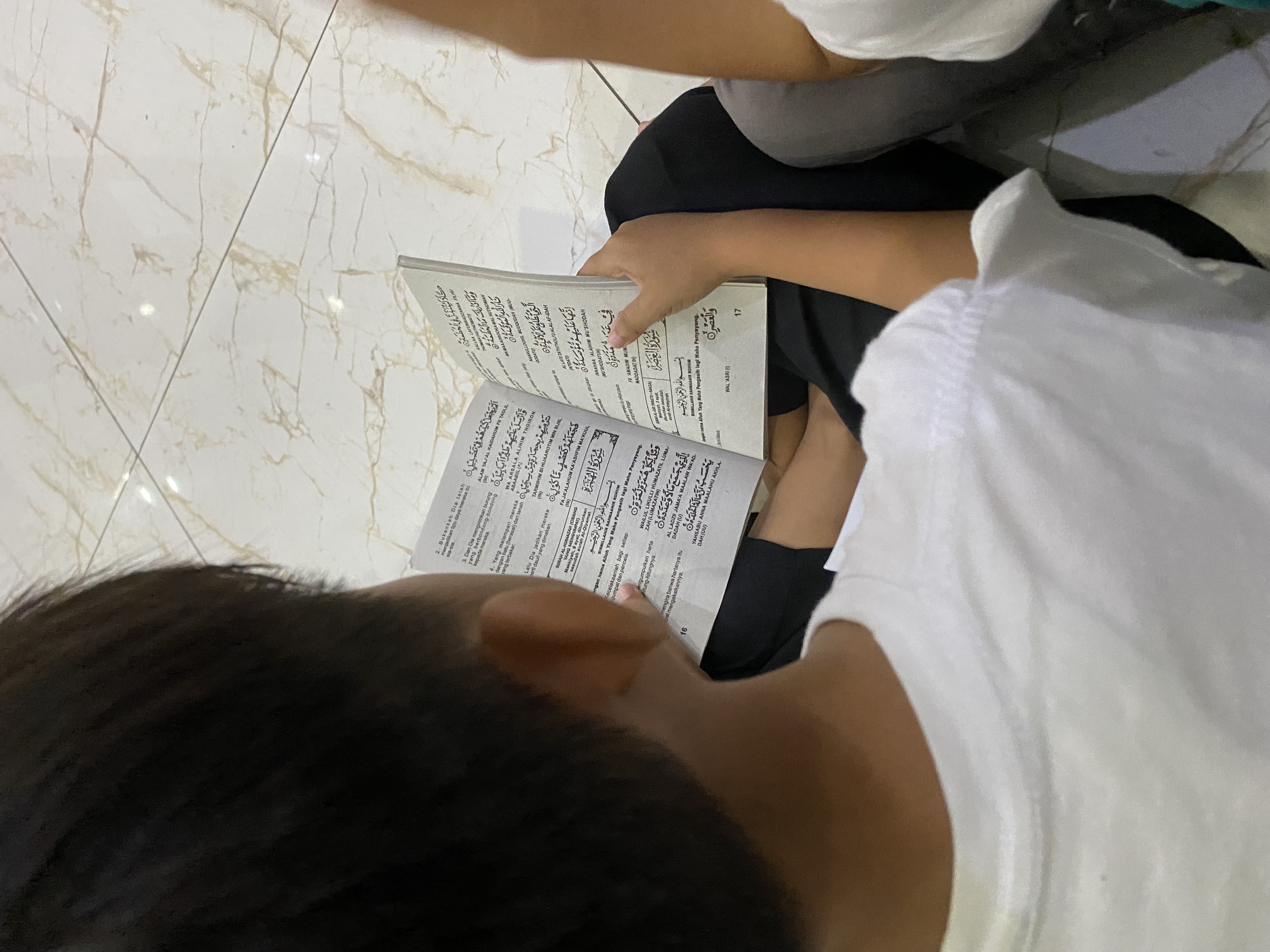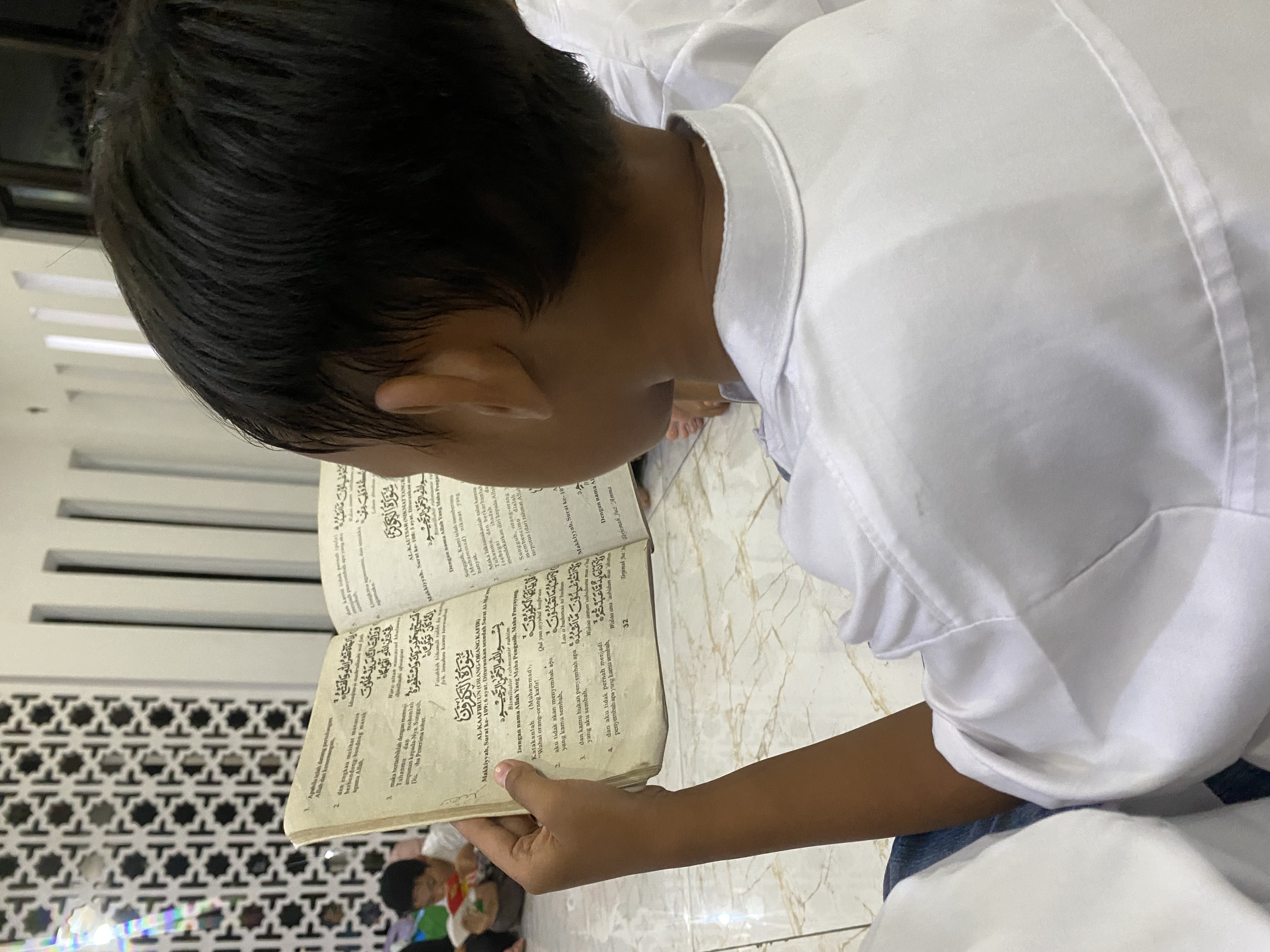 Melantunkan bacaan Al Quran yang sudah dihafal dengan sekali duduk dan disimak oleh para guru dan teman-teman